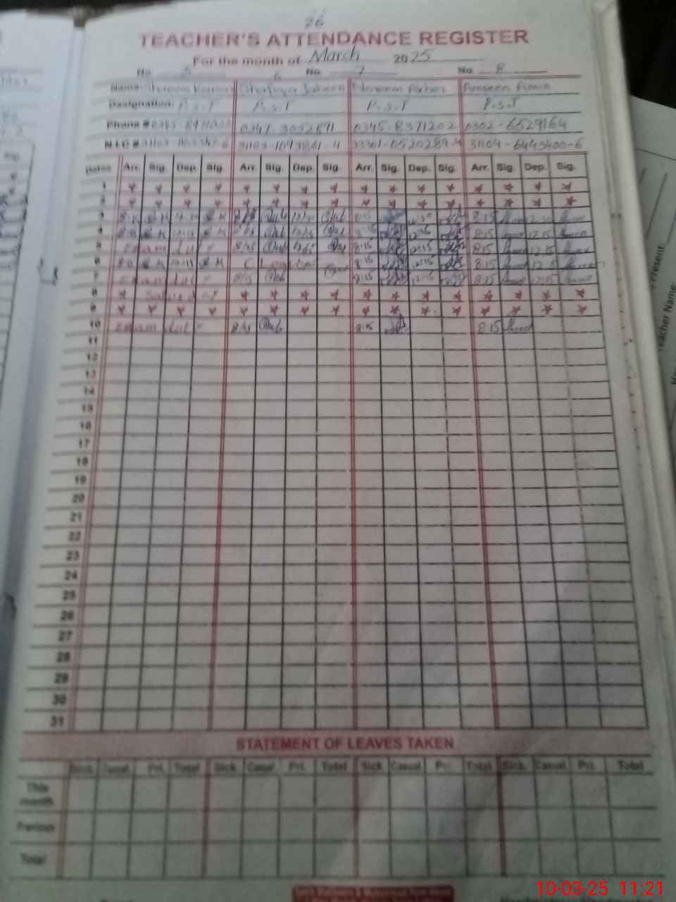 | 31**** | Sh**** Ko**** | PST | Regular | 0 | 0 | 0 | 0 | 0 | 0 | 0 | 0 | 0 | Exam Duty |
