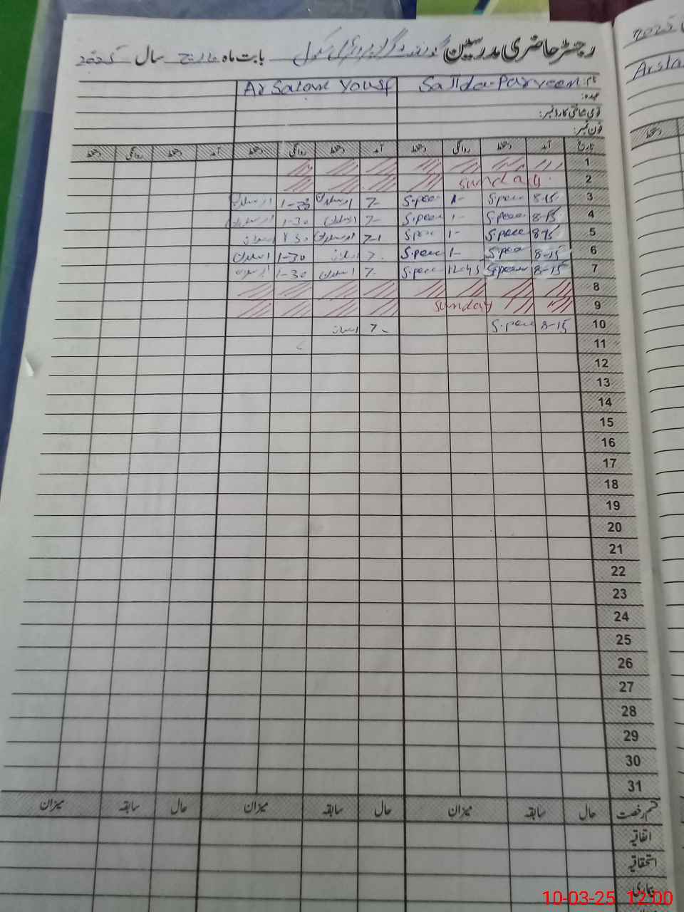 | CNIC | Full Name | Designation | R/C | Absence During Last Calender Month |