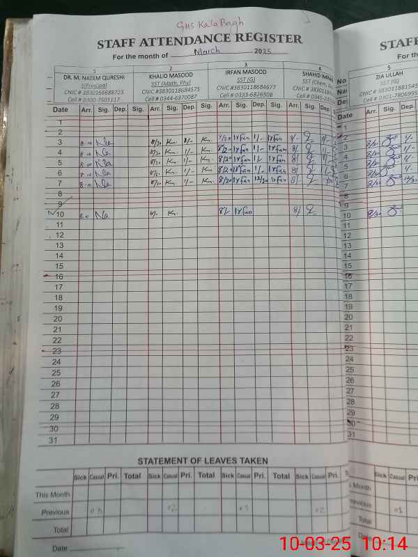 | 38**** | Zi**** Ul**** Kh**** | 3 | 1 | 0 | 0 | 0 | 0 | 0 | 0 | 0 | 0 | 0 | Exam Duty |