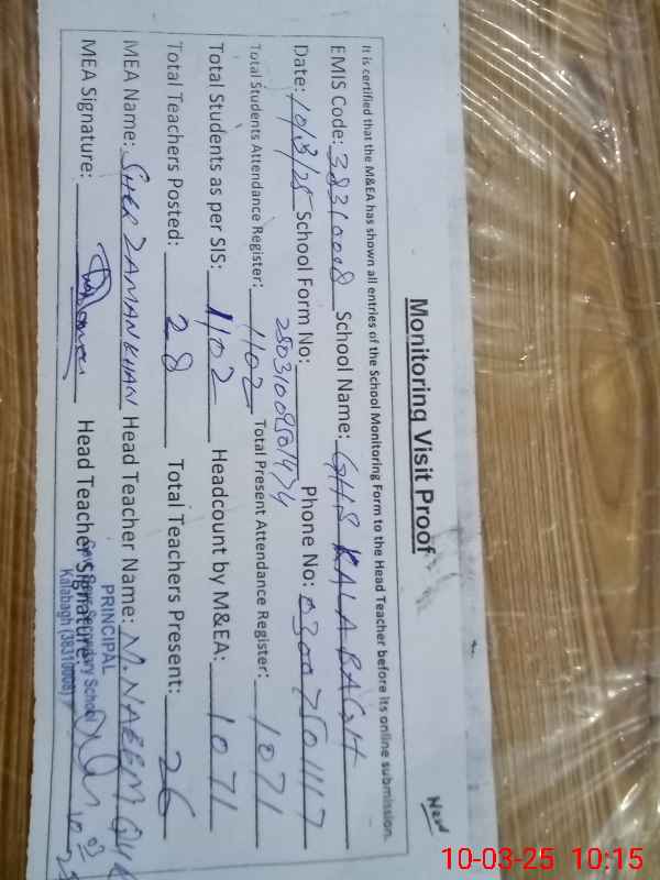 | EMIS Code: 38310008 | Name of School: GHS KALA BAGH | |||