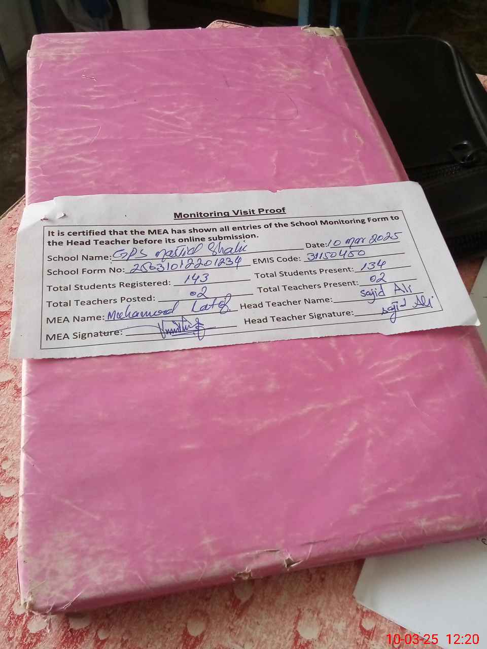 | EMIS Code: 31150450 | Name of School: GPS MASJID SHAHI MASHID | |||