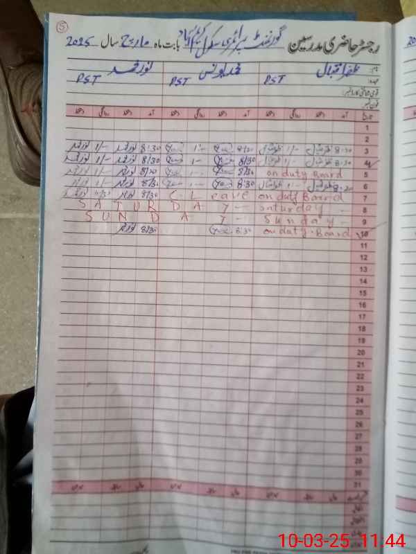 | 38**** | Za**** Iq**** | PST | Regular | 0 | 0 | 0 | 0 | 0 | 0 | 0 | 0 | 0 | Exam Duty |