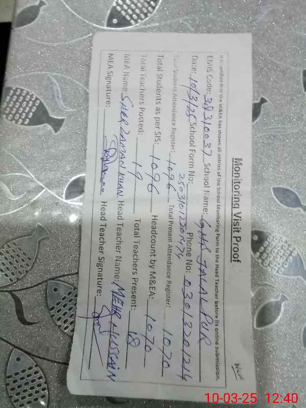 | EMIS Code: 38310037 | Name of School: GHS JALAL PUR | |||