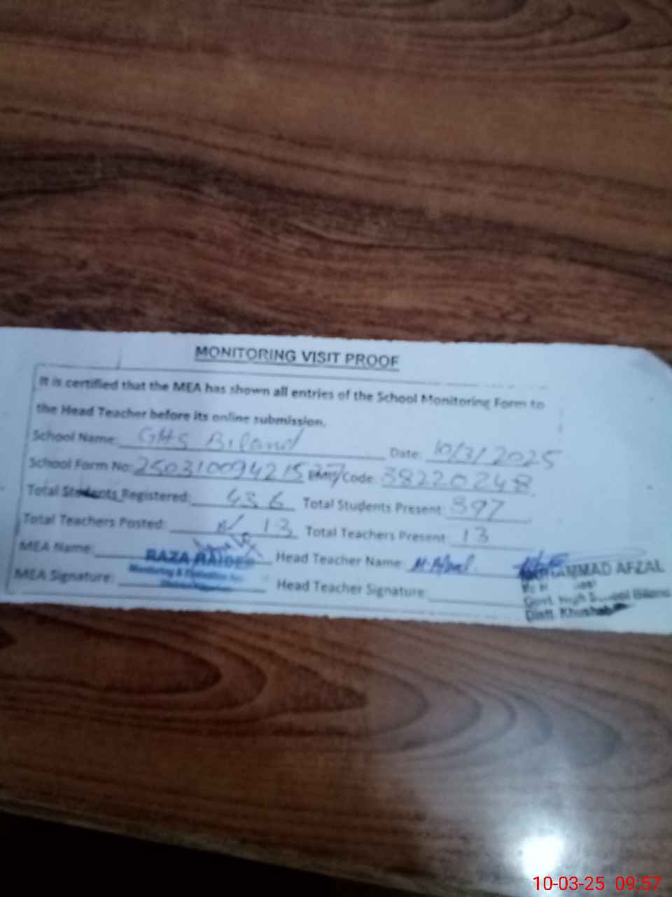 | EMIS Code: 38220248 | Name of School: GHS BILAND | |||