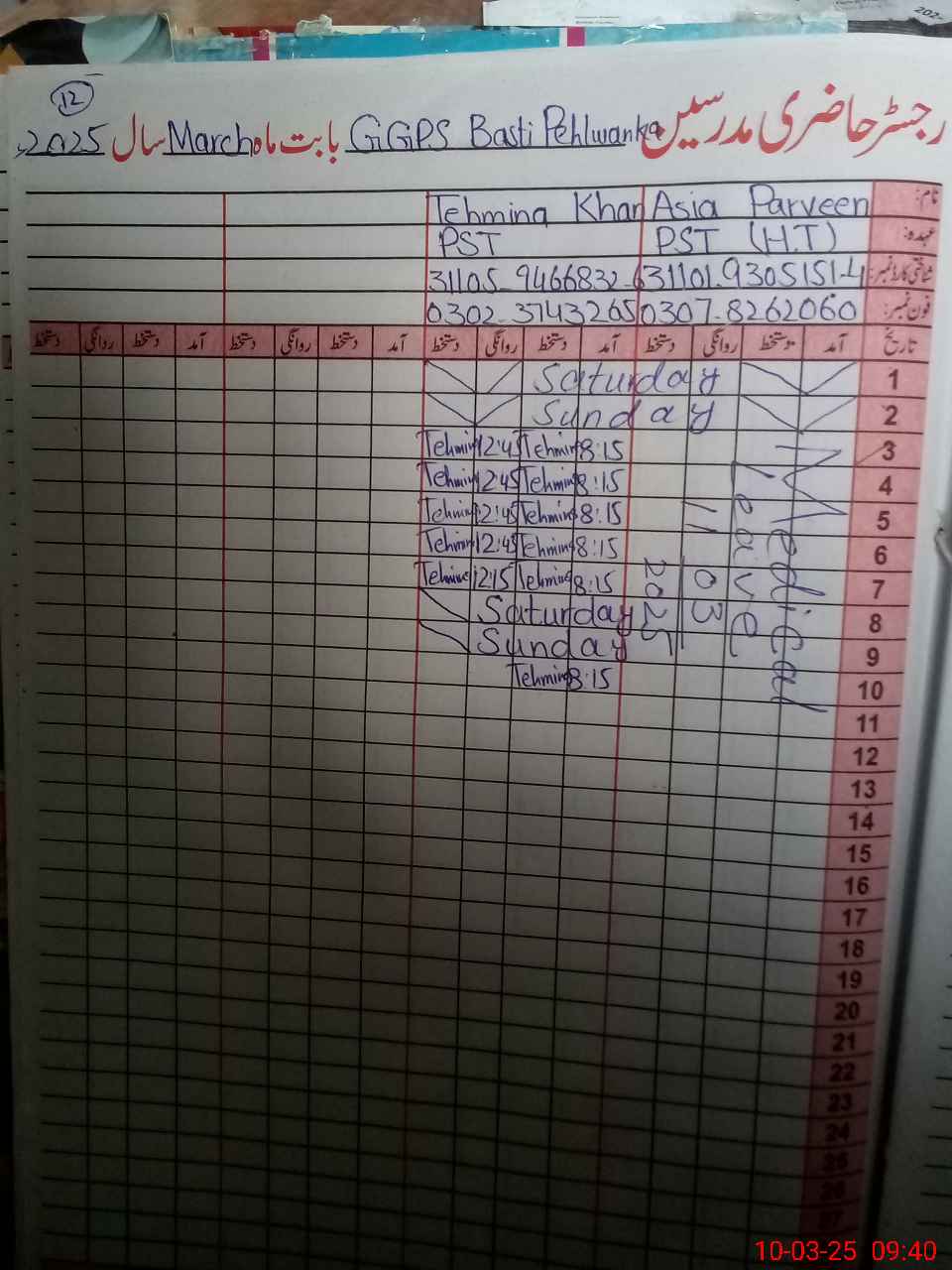 | Name: As**** Pa**** Designation: (School Headmaster's/Headmistress's) PST Phone/Cell Number: 03**** |