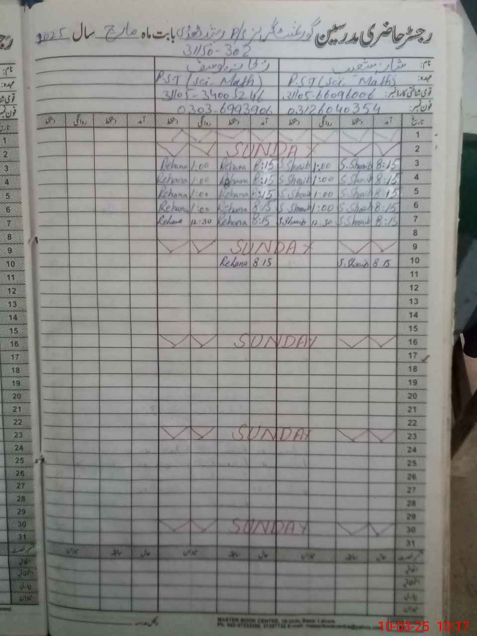 | Name: Sh**** Sh**** Designation: (School Headmaster's/Headmistress's) PST Phone/Cell Number: 03**** |