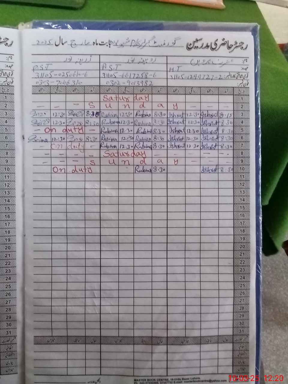 | 31**** | Zr**** No**** | PST | Regular | 0 | 0 | 0 | 0 | 0 | 0 | 0 | 0 | 0 | Exam Duty |