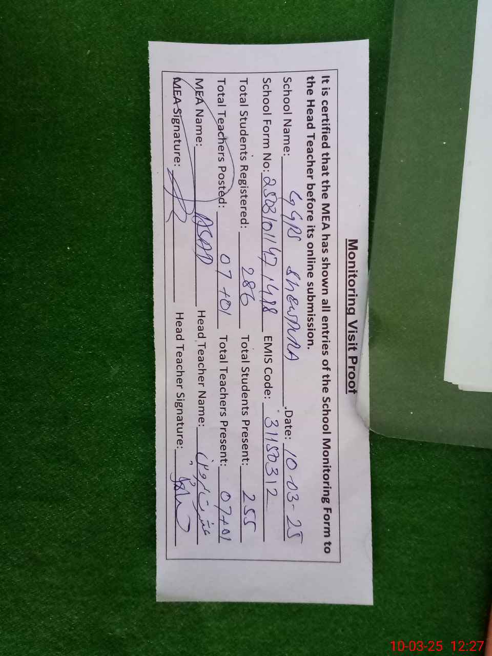 | EMIS Code: 31150312 | Name of School: GGPS SHEV PURA | |||