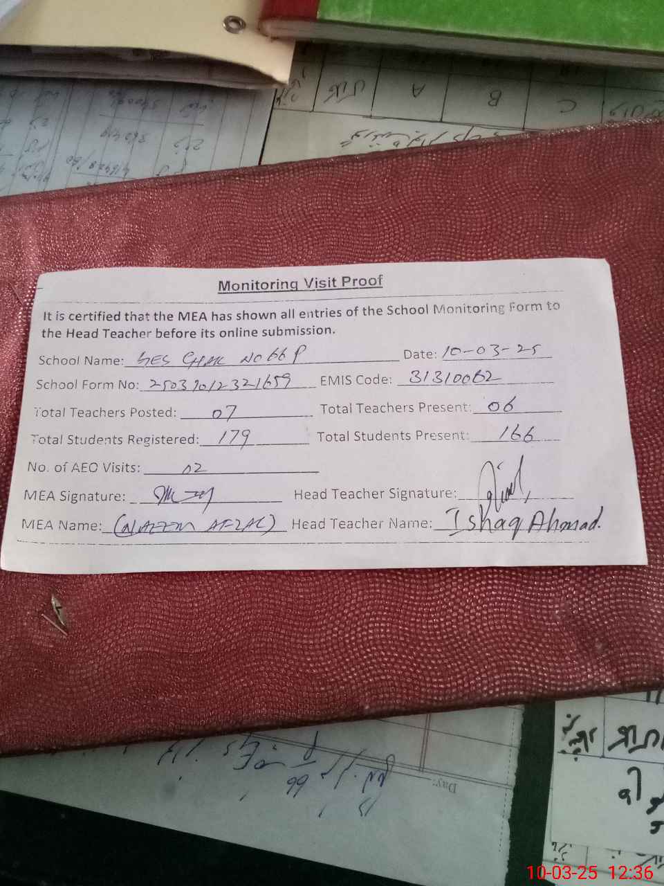 | EMIS Code: 31310062 | Name of School: GES CHAK NO 66/P | |||