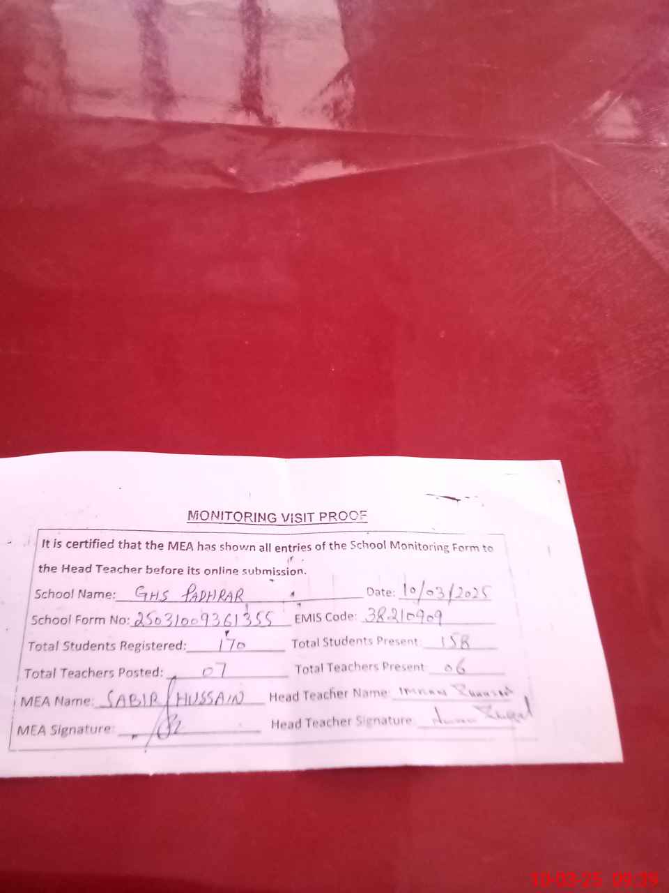 | EMIS Code: 38210909 | Name of School: GHS PADHARAR | |||