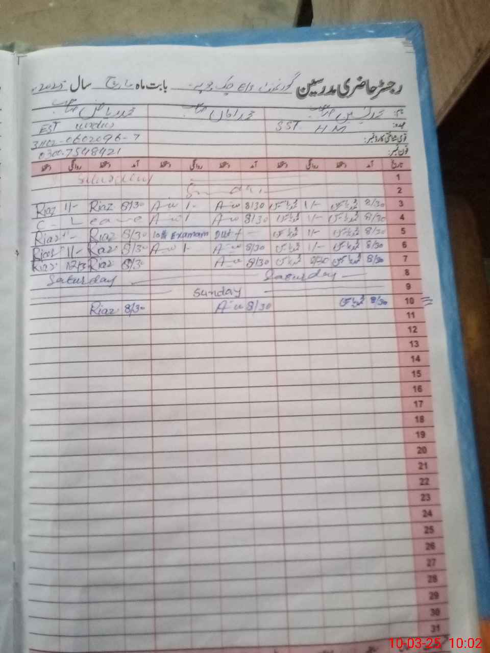 | Name: Mu**** Am**** Designation: (School Headmaster's/Headmistress's) EST Phone/Cell Number: 03**** |