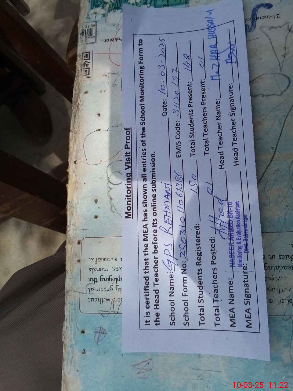 | EMIS Code: 31120197 | Name of School: GPS RAHMANNI | |||
