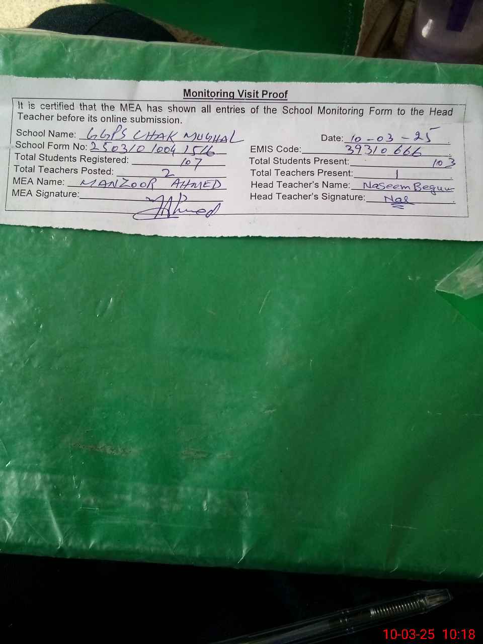 | EMIS Code: 39310666 | Name of School: GGPS CHAK MUGHAL | |||