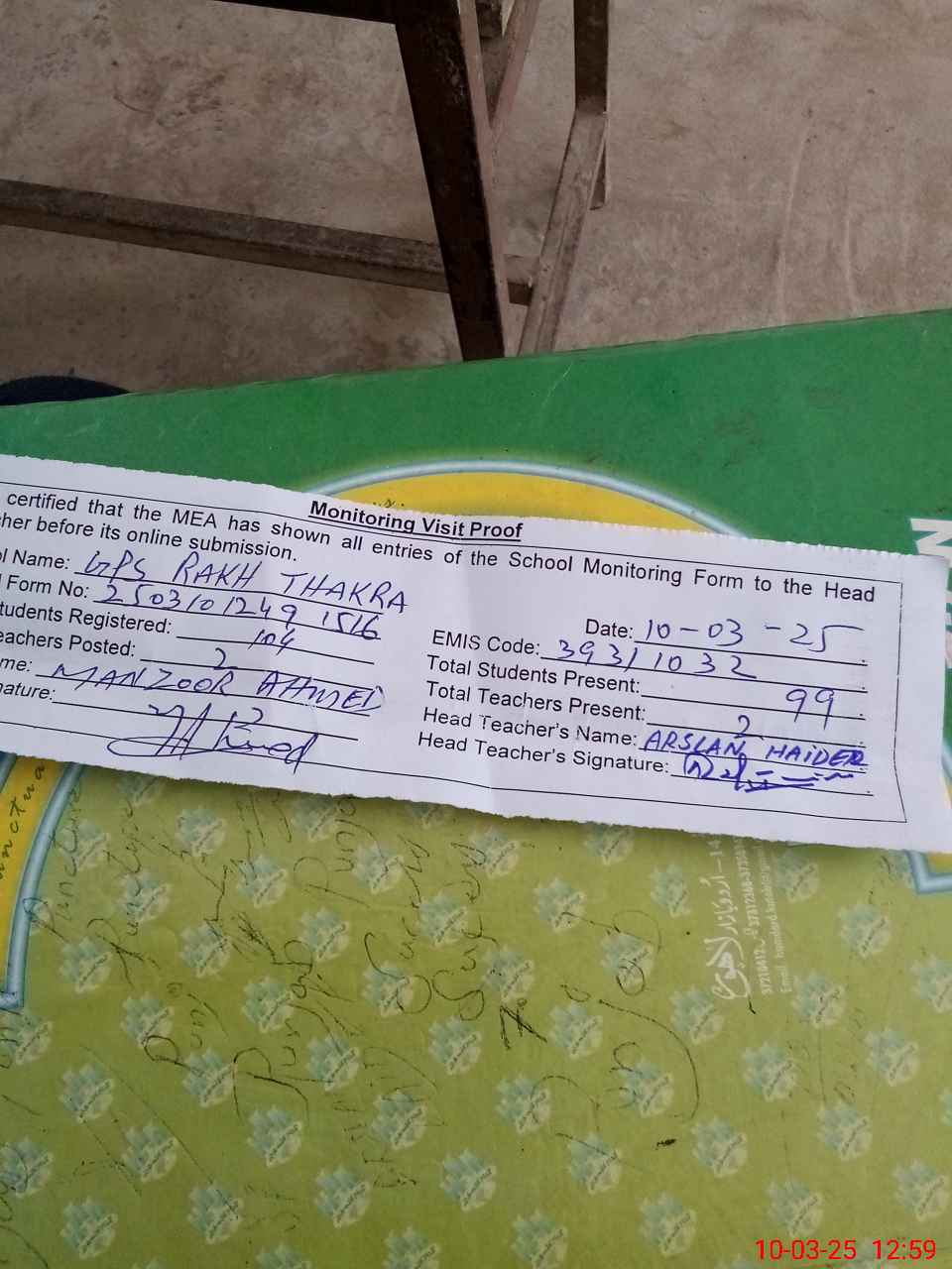 | EMIS Code: 39311032 | Name of School: GPS RAKH THAKRA | |||