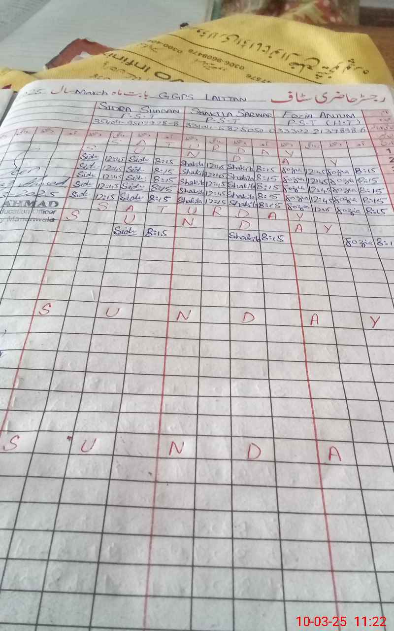 | Name: FO**** AN**** Designation: (School Headmaster's/Headmistress's) PST Phone/Cell Number: 03**** |