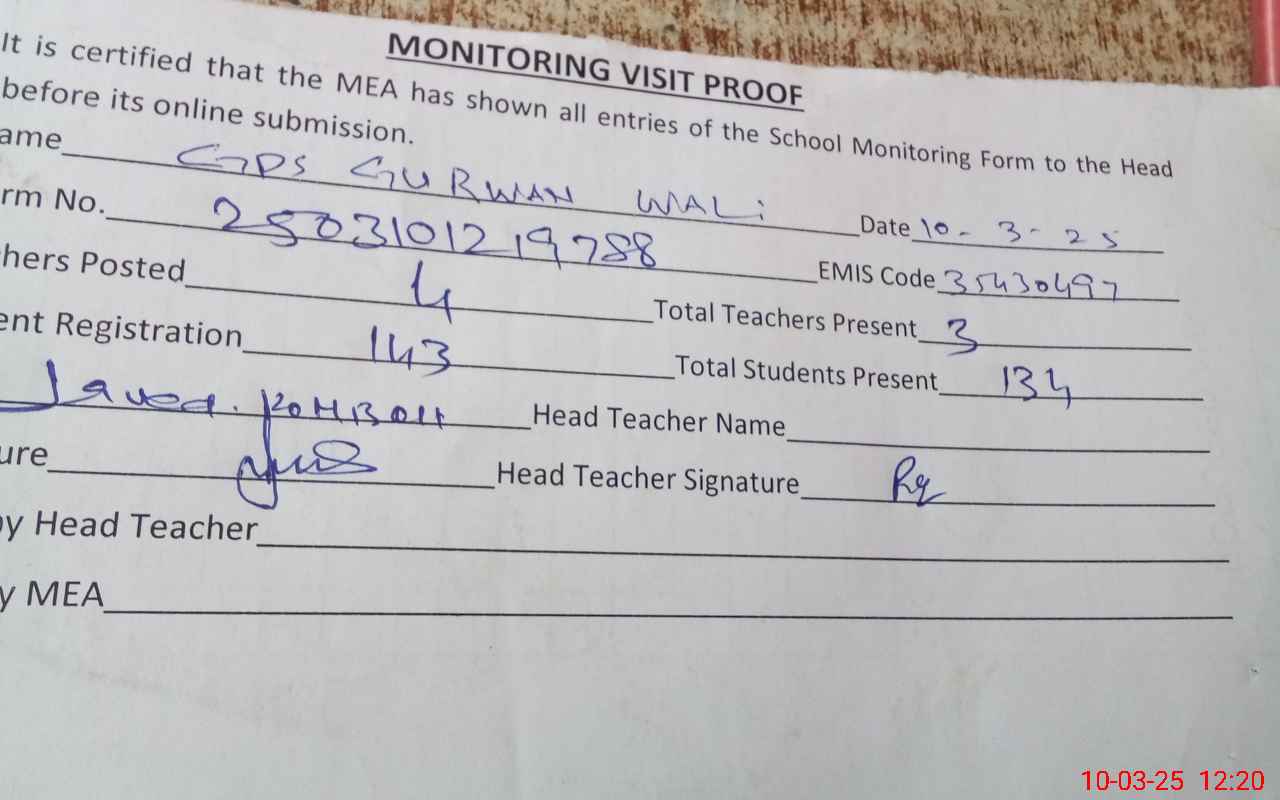 | EMIS Code: 35430497 | Name of School: GPS GURWAN WALI | |||