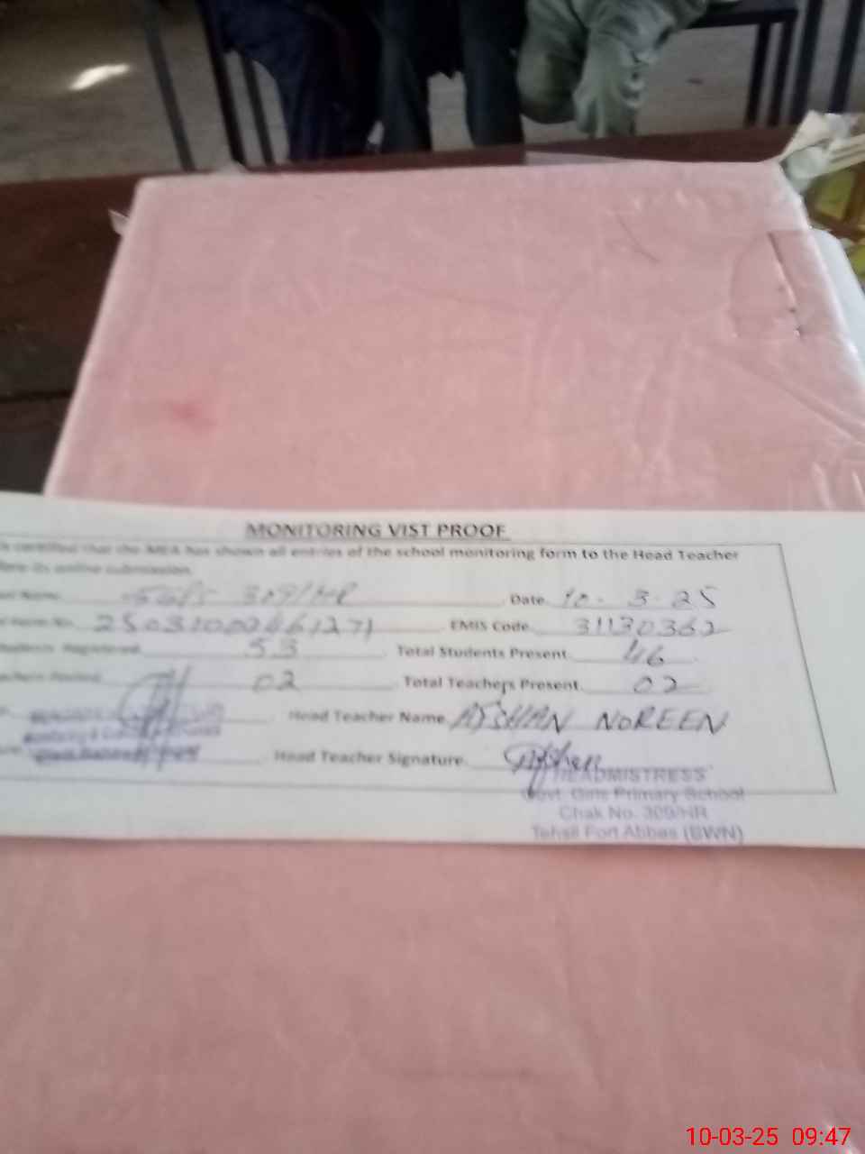 | EMIS Code: 31130362 | Name of School: GGPS CHAK 309/HR | |||