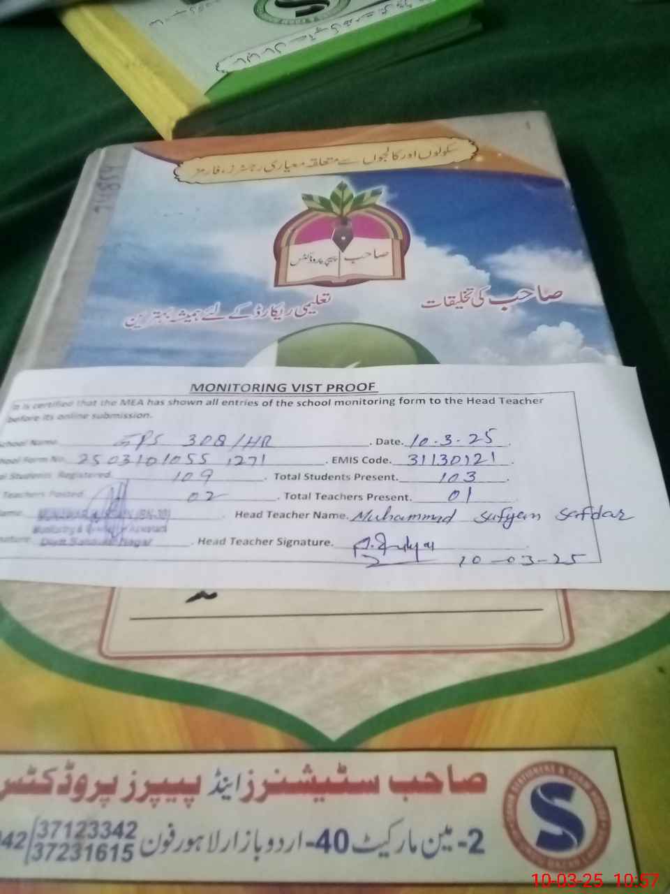 | EMIS Code: 31130121 | Name of School: GPS CHAK 308/HR NORTH | |||