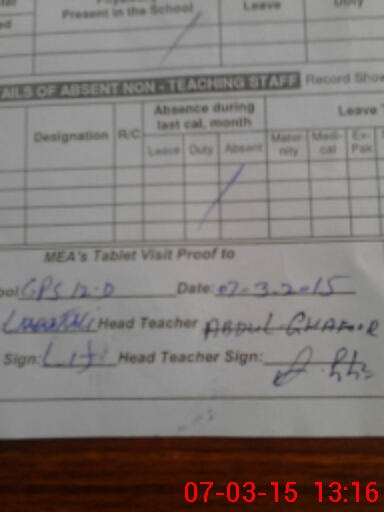 | Attendance Register | Head Teacher | MEA with School | Visit Proof |