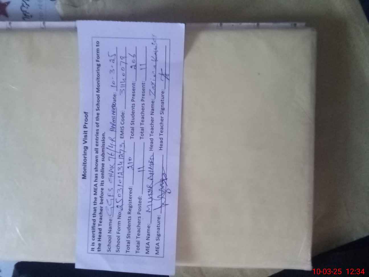| EMIS Code: 31140079 | Name of School: GGES 76/4-R HAROON ABAD | |||