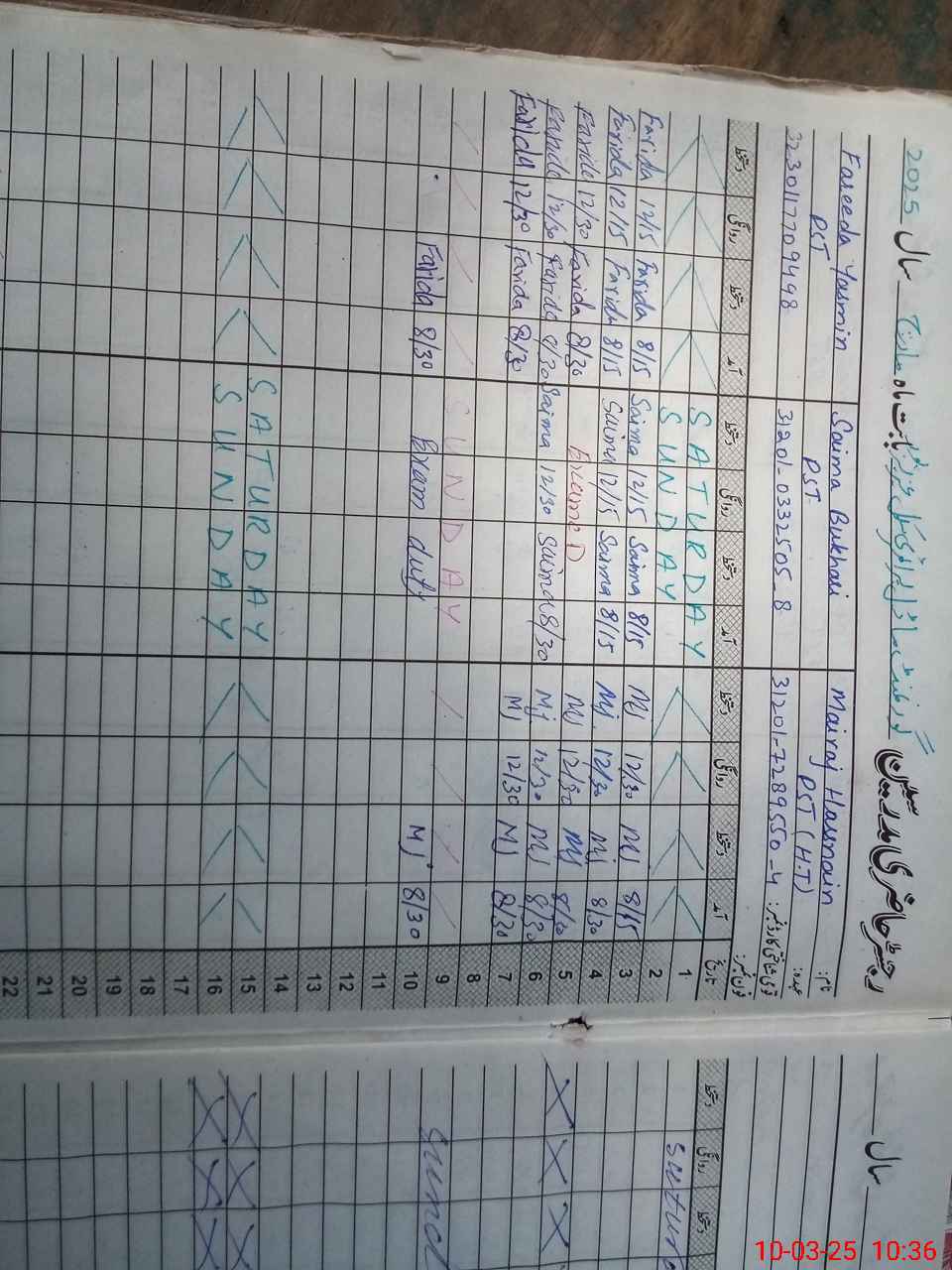 | 31**** | Sa**** Bu**** | 1 | 1 | 0 | 0 | 0 | 0 | 0 | 0 | 0 | 0 | 0 | Exam Duty |
