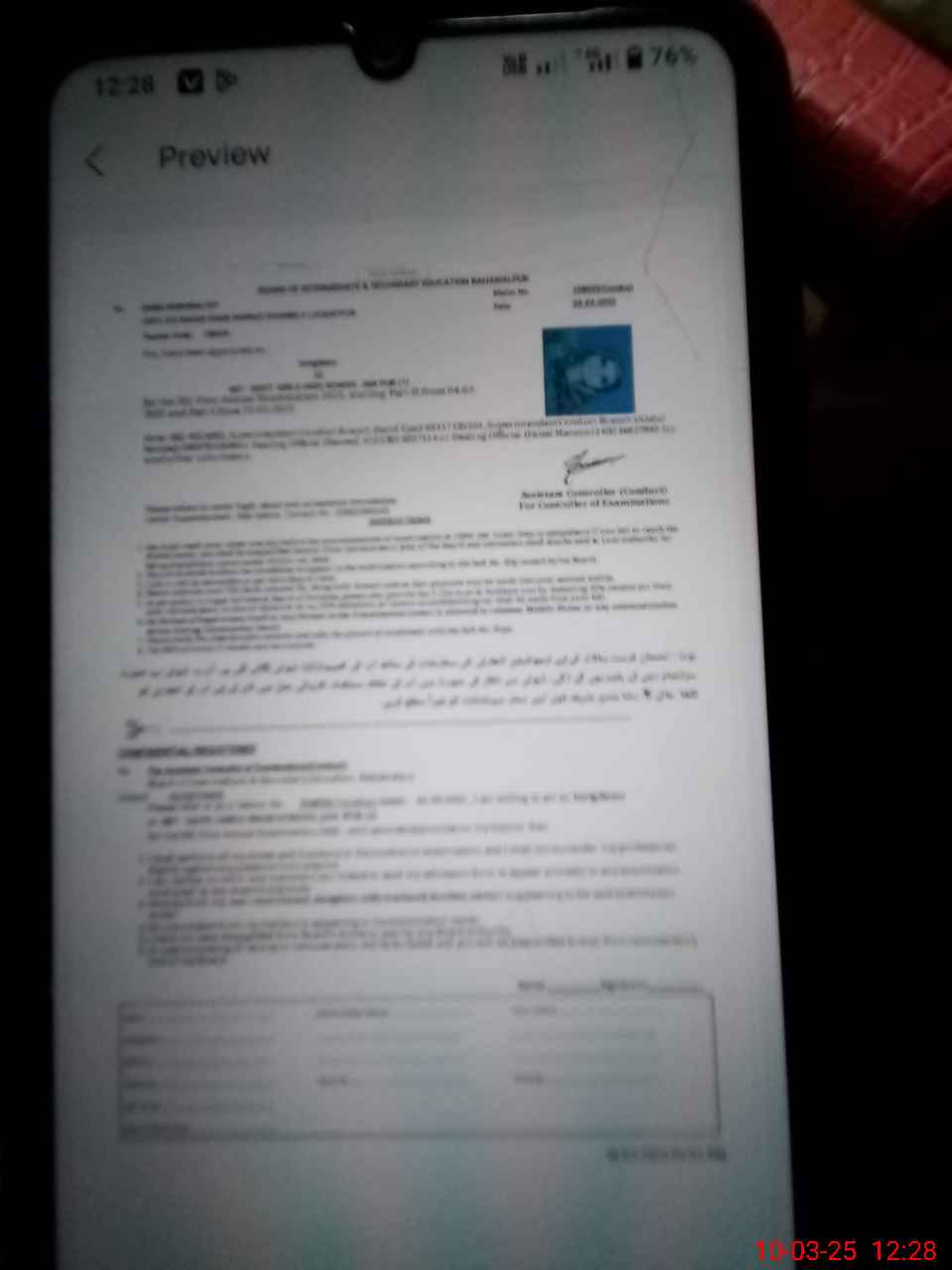 | Name: SY**** GA**** BI**** Designation: (School Headmaster's/Headmistress's) PST Phone/Cell Number: 03**** |