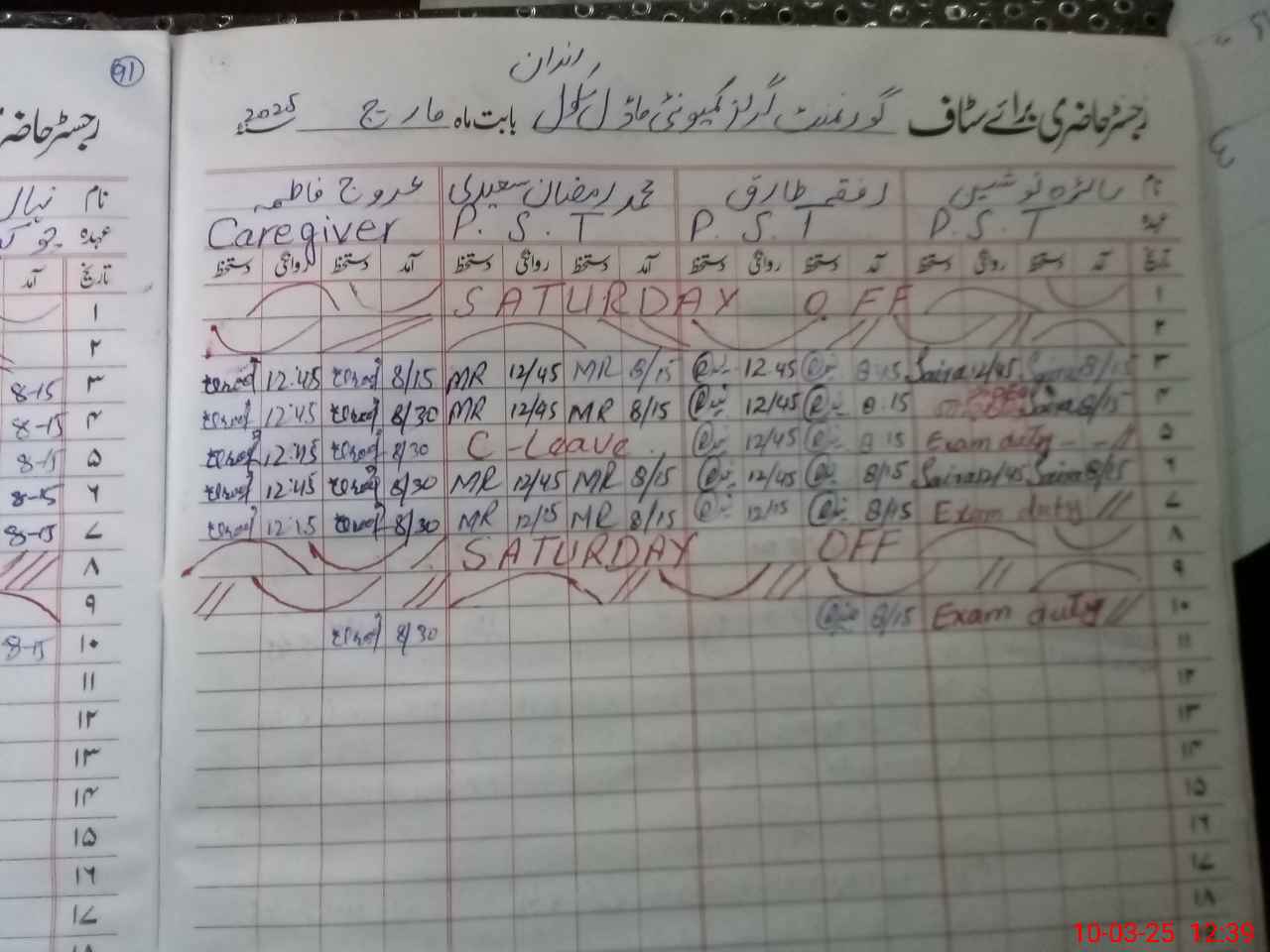 | 31**** | Sa**** No**** | 1 | 1 | 0 | 0 | 0 | 0 | 0 | 0 | 0 | 0 | 0 | Exam Duty |