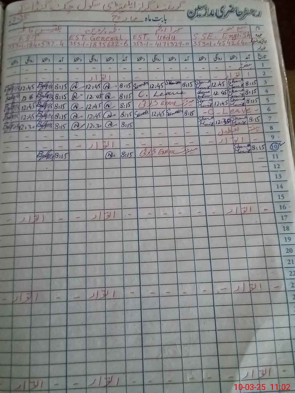 | Name: SH**** MU**** Designation: (School Headmaster's/Headmistress's) SSE ENG Phone/Cell Number: 03**** |
