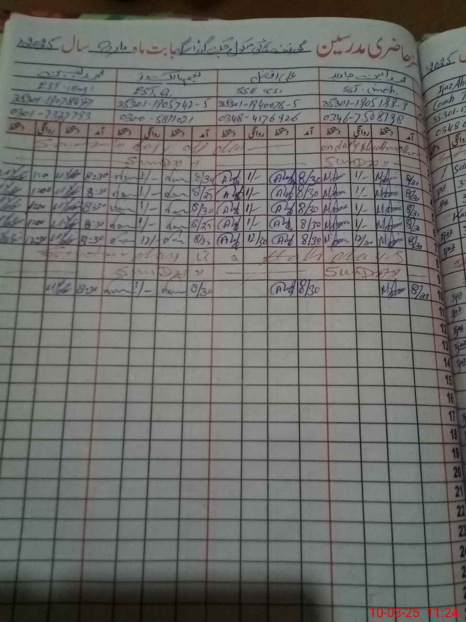 | CNIC | Full Name | Designation | R/C | Absence During Last Calender Month |