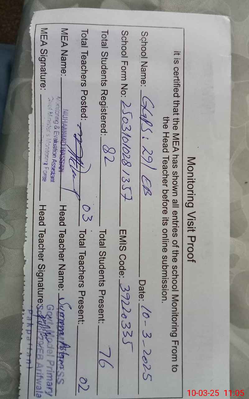 | EMIS Code: 39220335 | Name of School: GGPS 29 EB P.O. 19 EB | |||