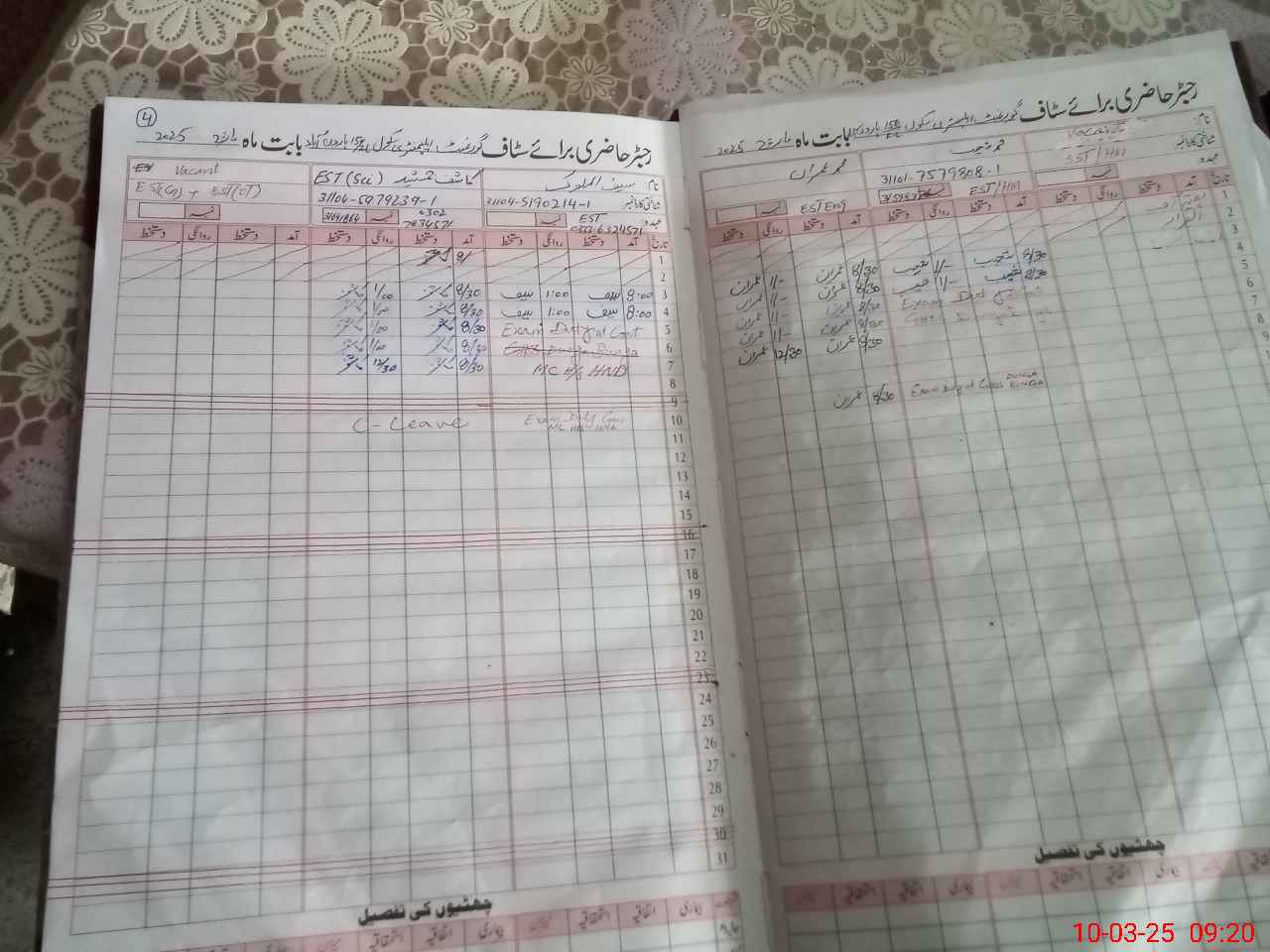 | 31**** | Sa**** UlMa**** | EST | Regular | 0 | 0 | 0 | 0 | 0 | 0 | 0 | 0 | 0 | Exam Duty |