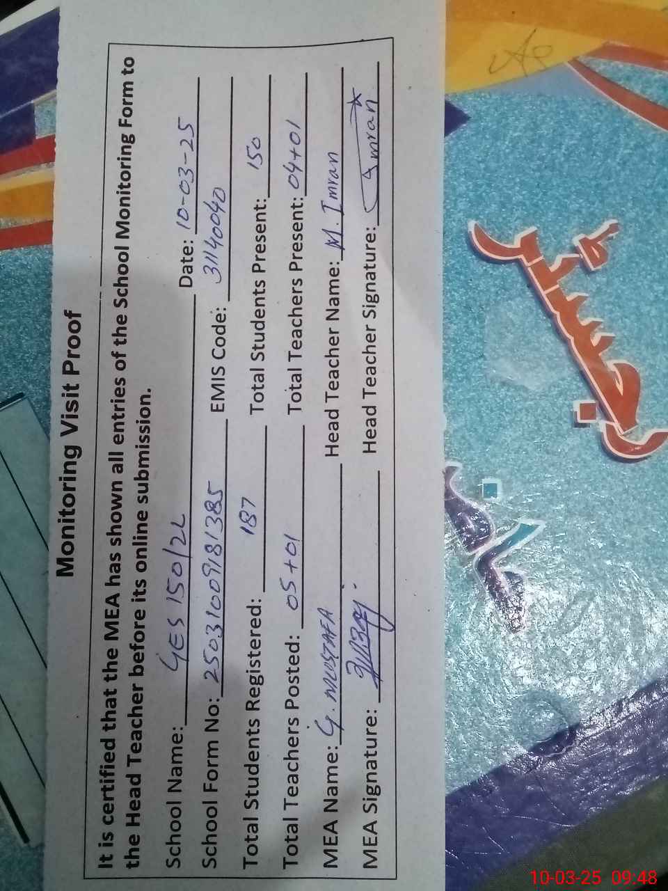| EMIS Code: 31140040 | Name of School: GES CHAK NO.150/2-L | |||
