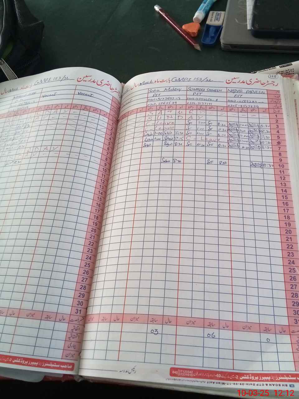 | CNIC | Full Name | Designation | R/C | Absence During Last Calender Month |
