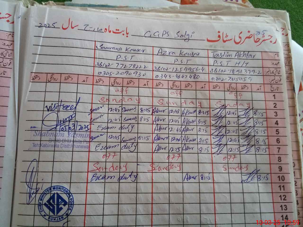 | 36**** | Sa**** Ko**** | PST | Regular | 0 | 0 | 0 | 0 | 0 | 0 | 0 | 0 | 0 | Exam Duty |