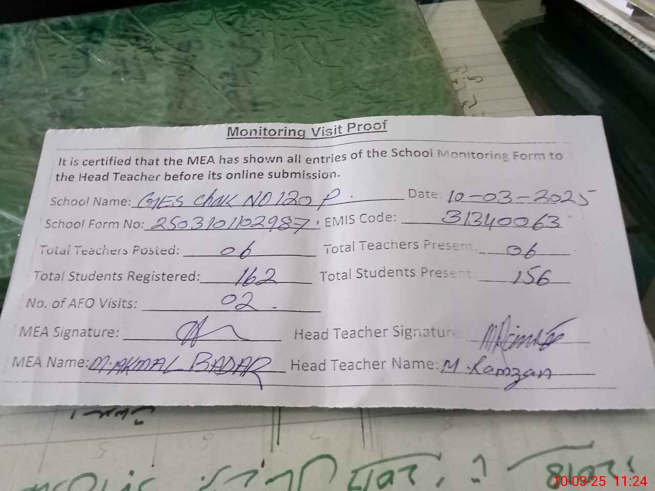 | EMIS Code: 31340063 | Name of School: GES CHAK 120/P | |||