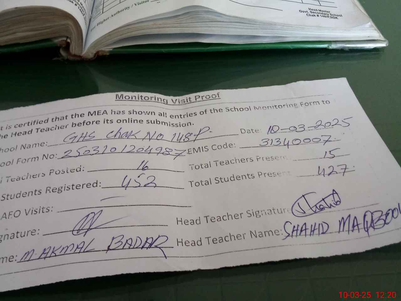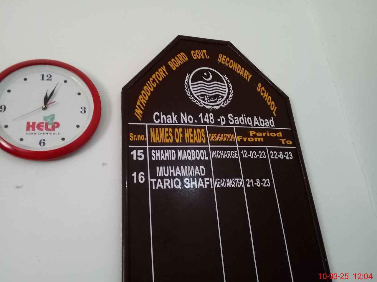 | EMIS Code: 31340007 | Name of School: GHS CHAK NO. 148/P | |||