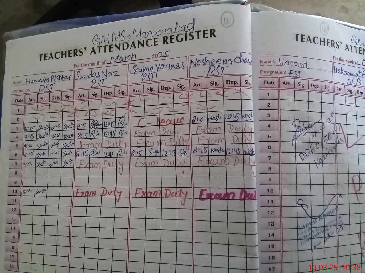 | 36**** | Su**** Na**** | PST | Regular | 0 | 0 | 0 | 0 | 0 | 0 | 0 | 0 | 0 | Exam Duty |