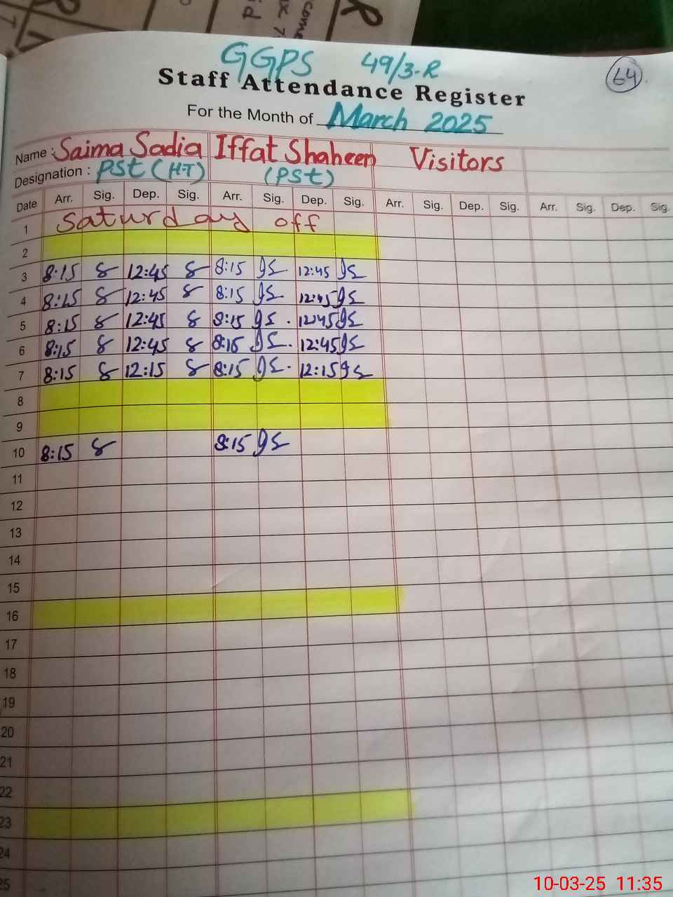 | Name: Sa**** Sa**** Designation: (School Headmaster's/Headmistress's) PST Phone/Cell Number: 03**** |