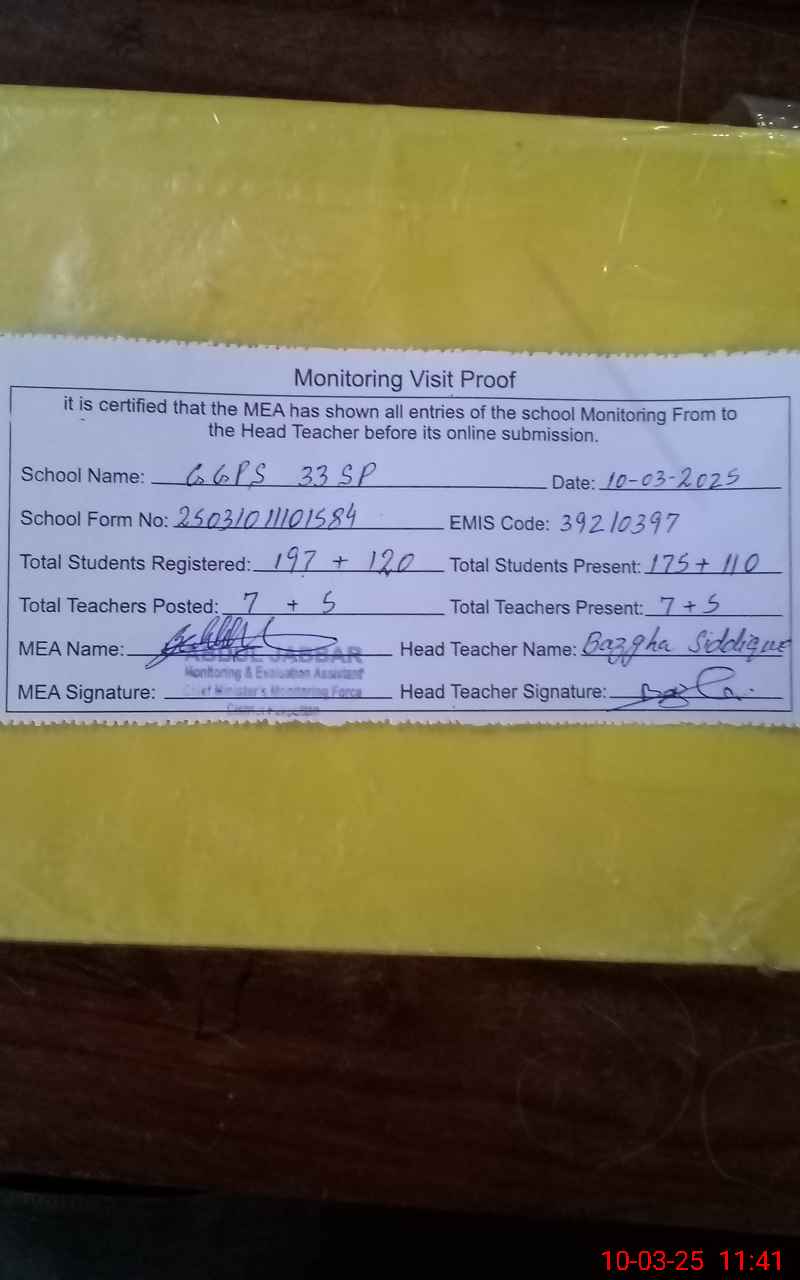 | EMIS Code: 39210397 | Name of School: GGPS 33 SP | |||