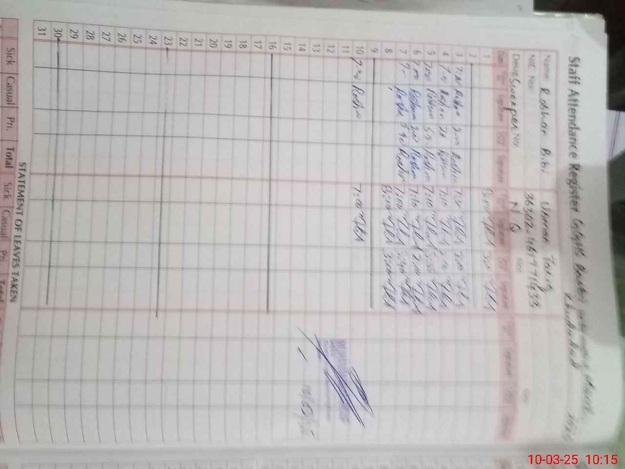 | 32**** | Sa**** Ra**** | 3 | 1 | 0 | 0 | 0 | 0 | 0 | 0 | 0 | 0 | 0 | Absent (Un-Authorized) |