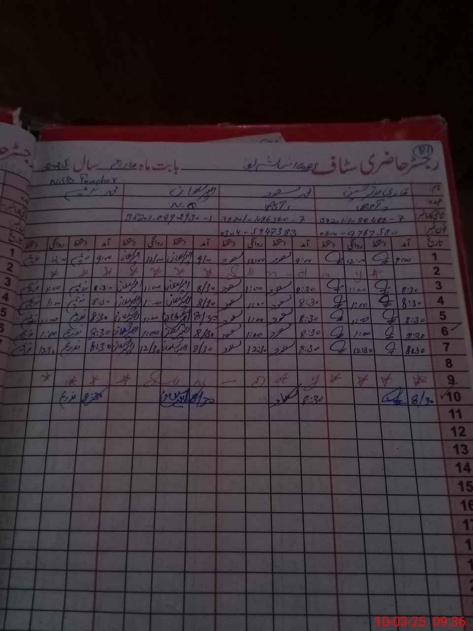 | CNIC | Full Name | Designation | R/C | Absence During Last Calender Month |