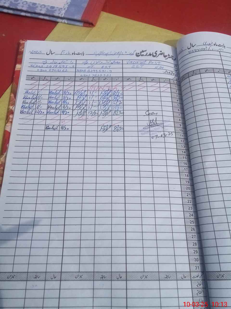 | Name: Mu**** Ar**** Aw**** Designation: (School Headmaster's/Headmistress's) E S T Phone/Cell Number: 03**** |