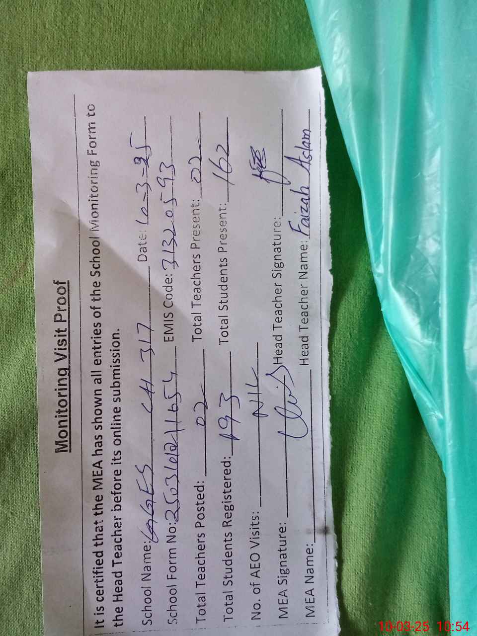 | EMIS Code: 31320593 | Name of School: GGES CHAK 317/A 6-R | |||