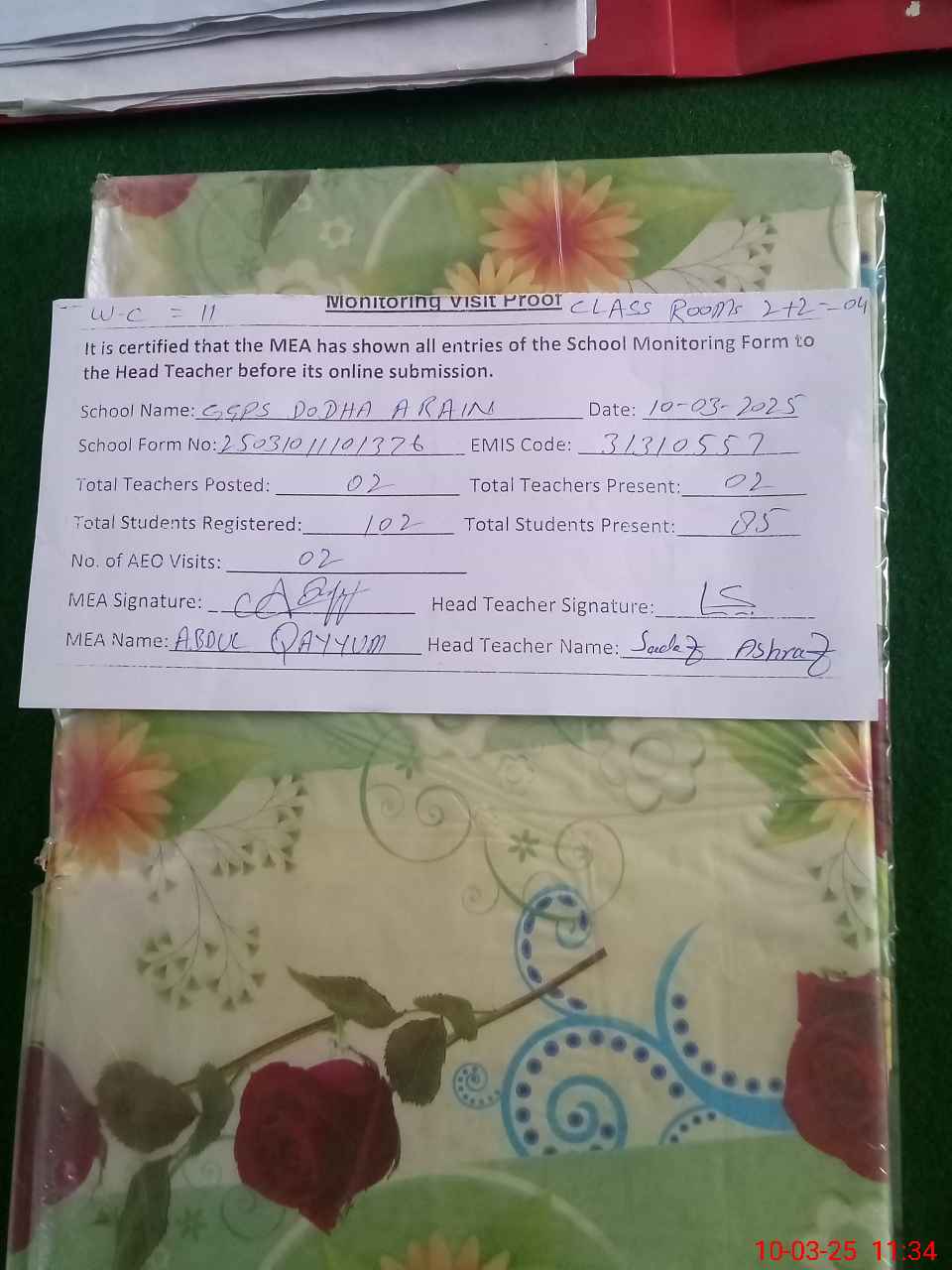 | EMIS Code: 31310557 | Name of School: GGPS DODAH ARIAN | |||
