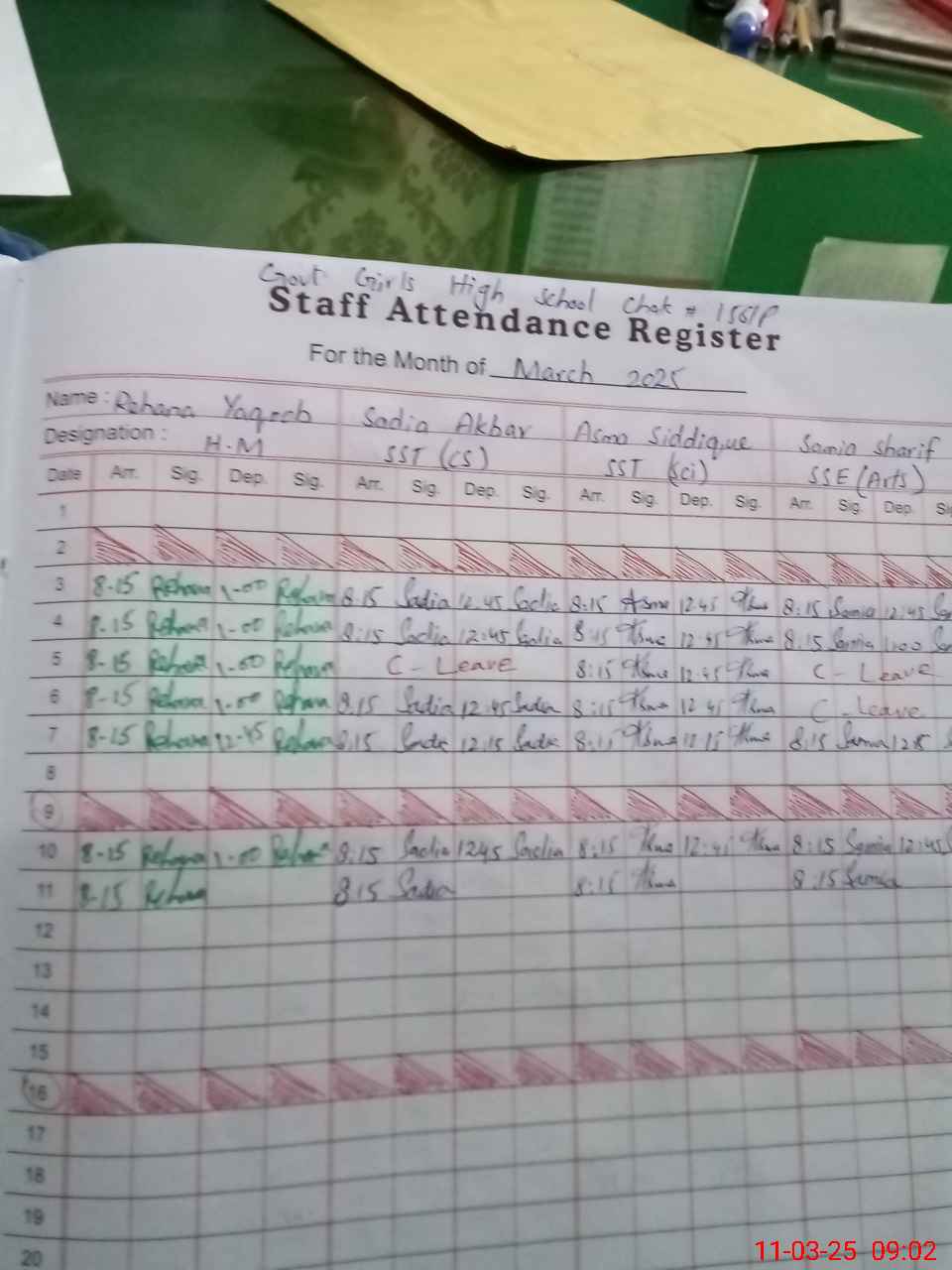 | CNIC | Full Name | Designation | R/C | Absence During Last Calender Month |