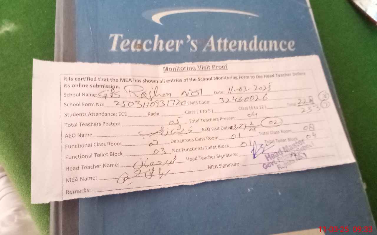 | EMIS Code: 32430026 | Name of School: GPS ROJHAN NO. 1 | |||