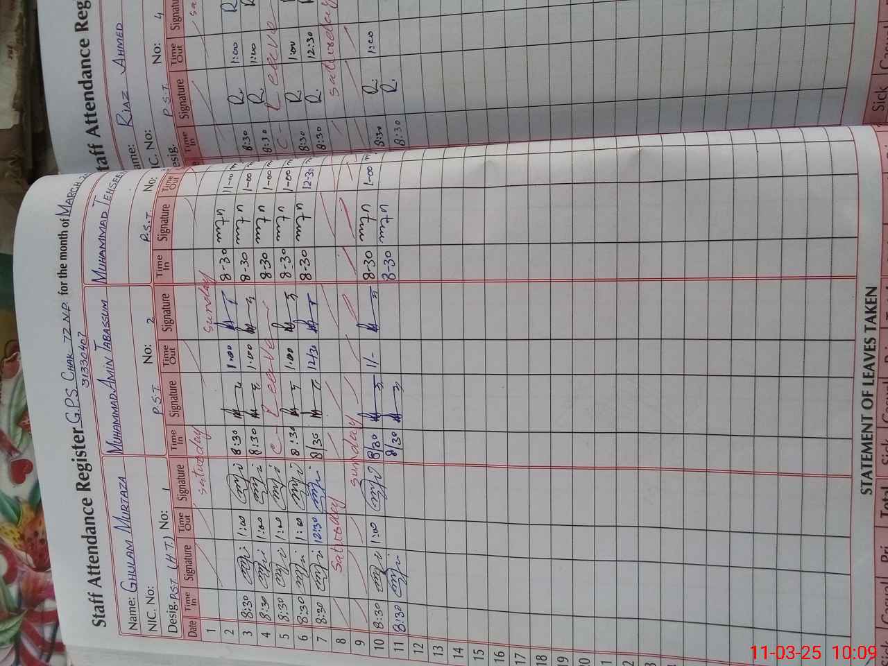 | CNIC | Full Name | Designation | R/C | Absence During Last Calender Month |