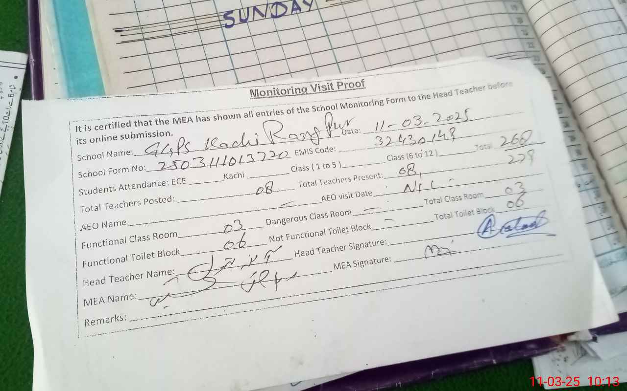 | EMIS Code: 32430149 | Name of School: GGPS KACHI RANG PUR | |||