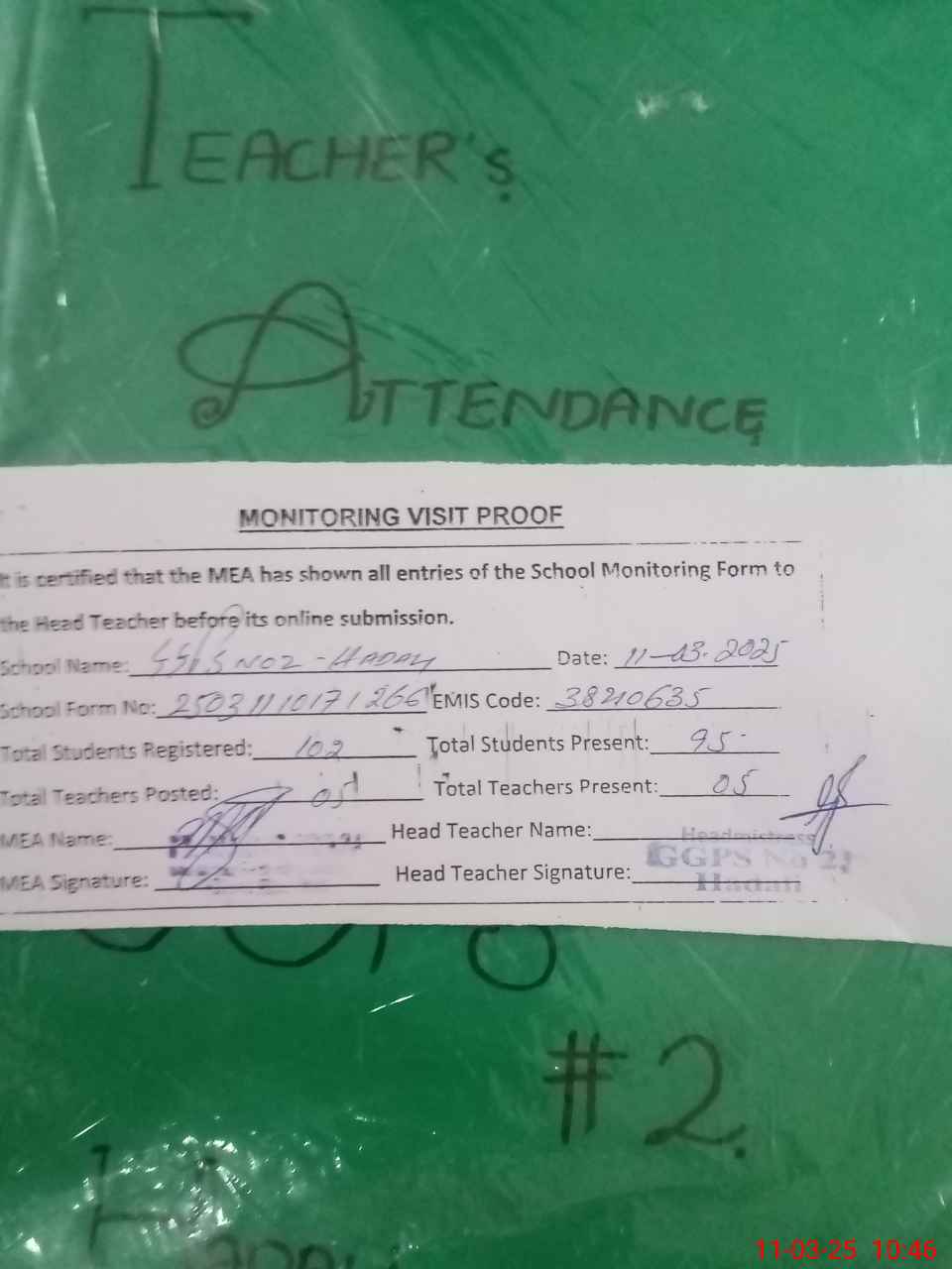 | EMIS Code: 38210635 | Name of School: GGPS NO. 2 HADALI | |||