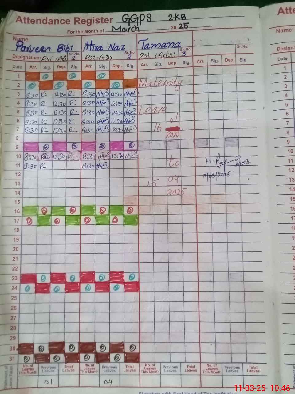| 36**** | Ta**** | PST | Regular | 11 | 0 | 0 | 11 | 0 | 0 | 0 | 0 | 0 | Maternity |